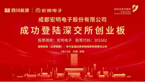 3月25日上午9时25分,随着深圳证券交易所上市大厅的钟声响起,成都宏明电子股份有限公司(股票代码:301682,以下简称“宏明电子”)在深交所创业板正式敲钟上市,成为四川“十五五”开局的“第一股”。