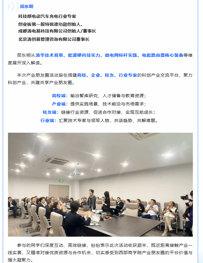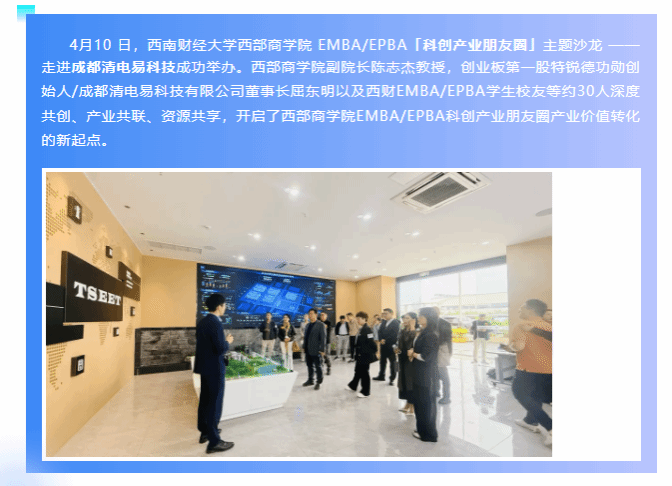 产教融合 校企同行 西南财经大学西部商学院EMBAEPBA —— 科创产业朋友圈主题沙龙走进清电易