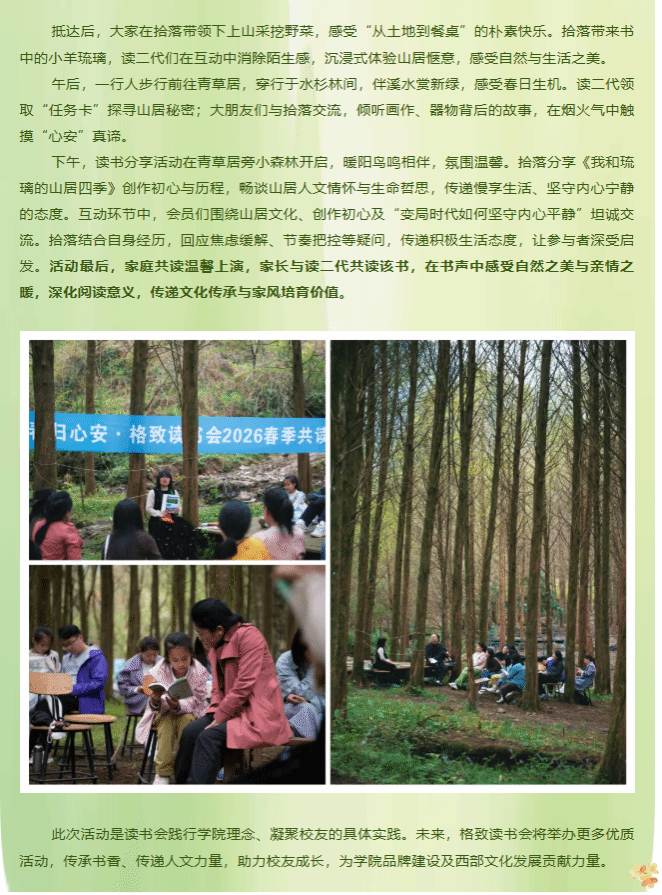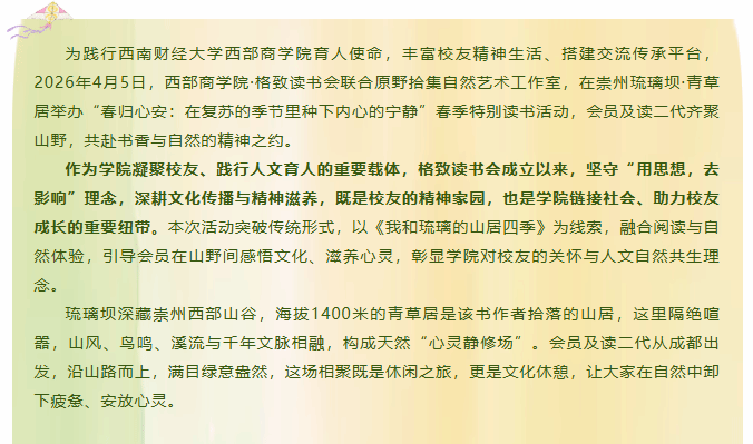 “春归心安 书香润心”——西南财经大学西部商学院格致读书会春季特别读书活动